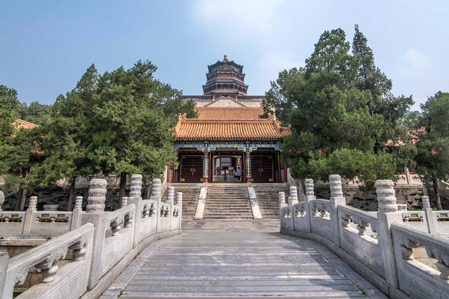 Blue Sky Above Summer Palace Pagoda Wallpaper -