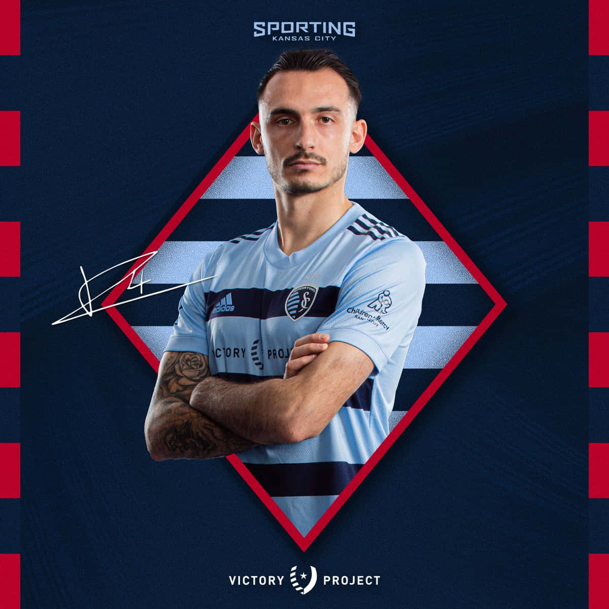 Sporting Kansas City Logo On Blue Grey Jersey Wallpaper -