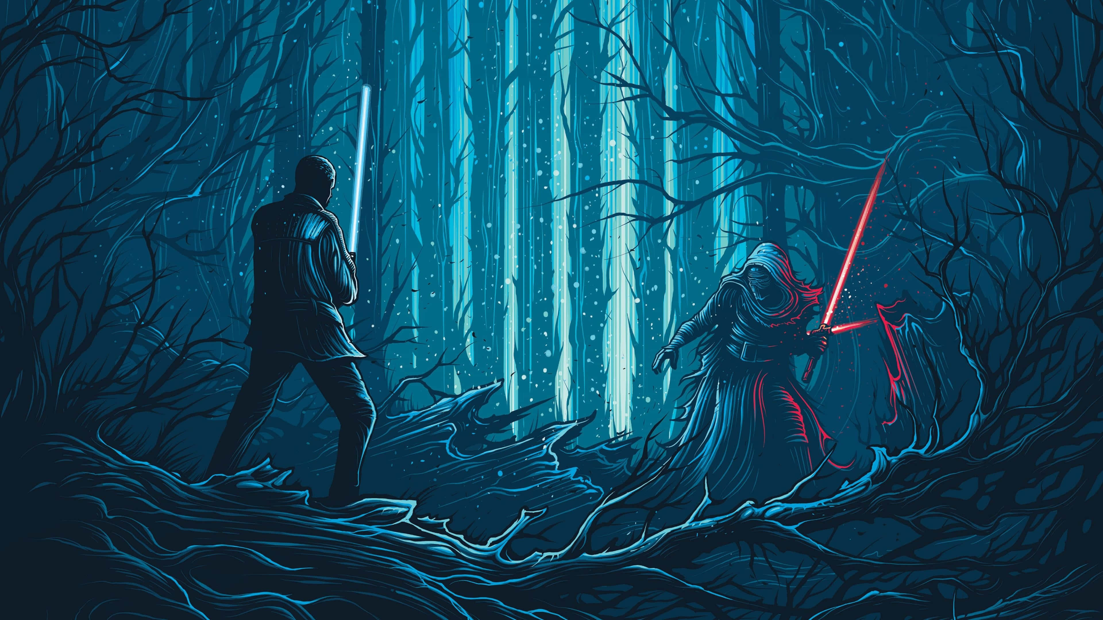 Star Wars Forest Duel Ultra Wide Wallpaper -