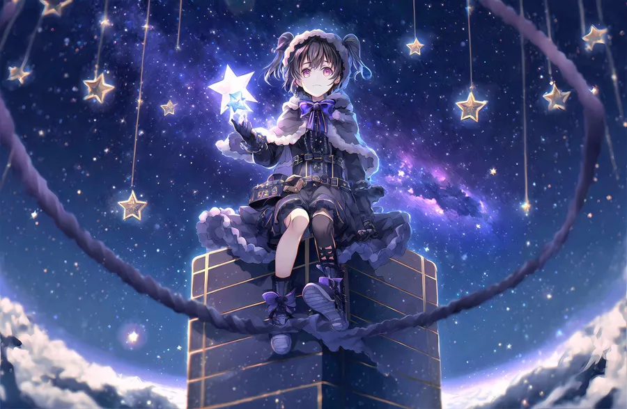 Starry Night Purple Anime Girl Wallpaper