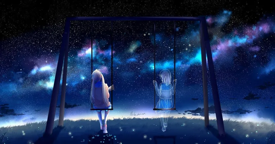 Starry Night Swing Solitude Anime Art Wallpaper -