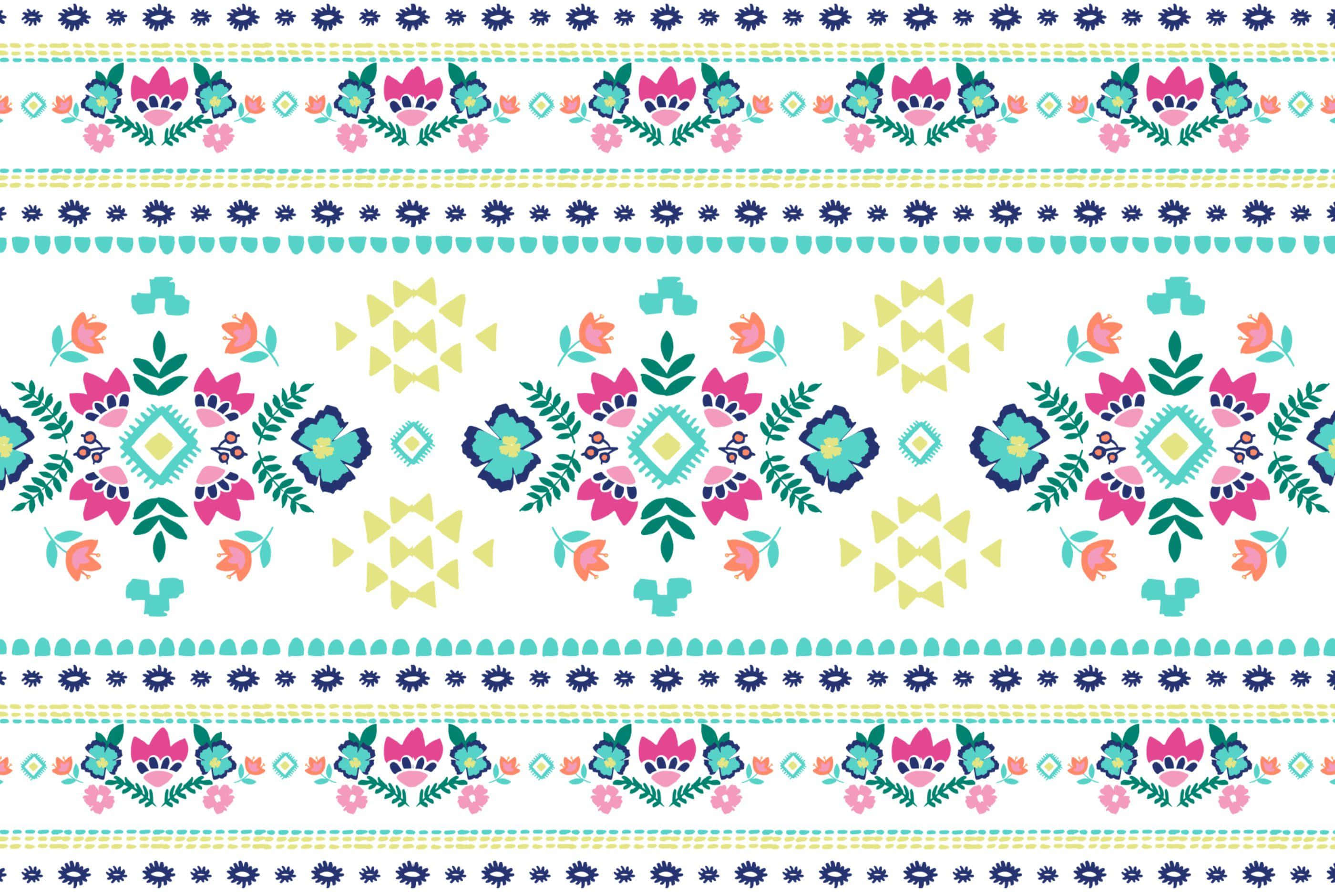 A Colorful Floral Pattern With Circles Wallpaper -