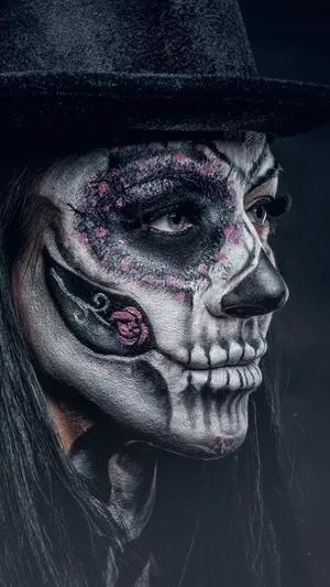 A Woman With Skeleton Makeup And A Hat Wallpaper -