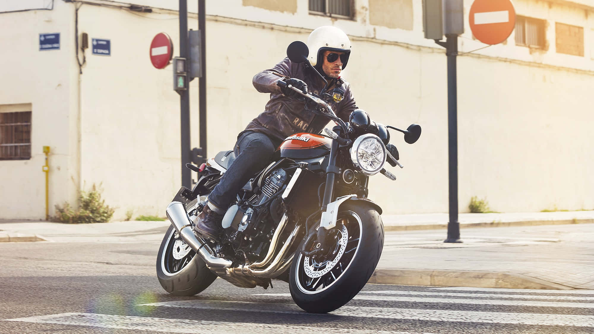 A Street With A Car Driving Down It Wallpaper -