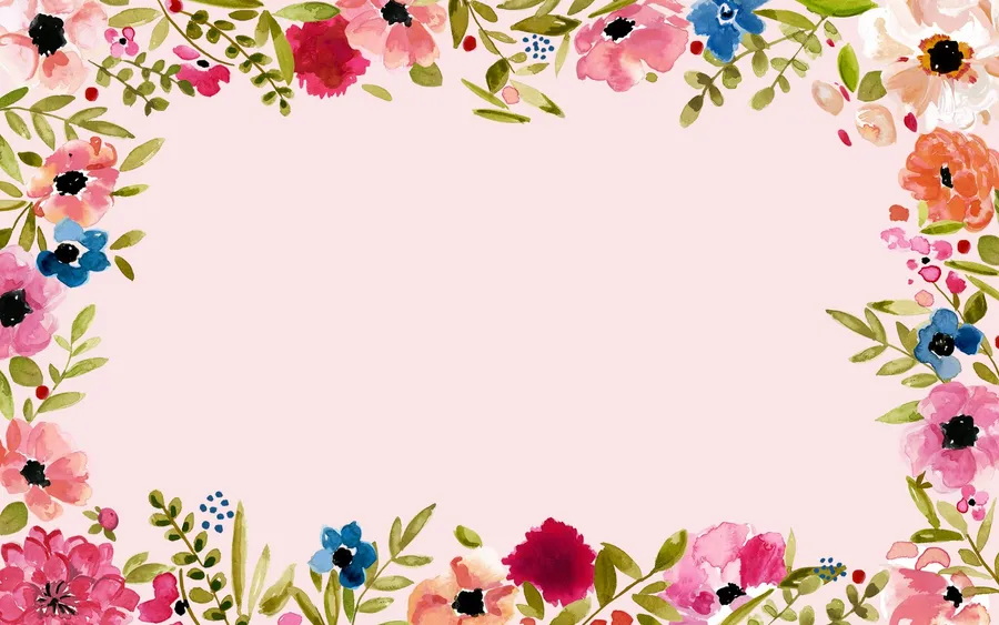 A Watercolor Floral Border On A Navy Background Wallpaper -