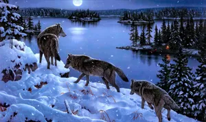 Wolf Pack Snow Forest Sunrise Wallpaper -