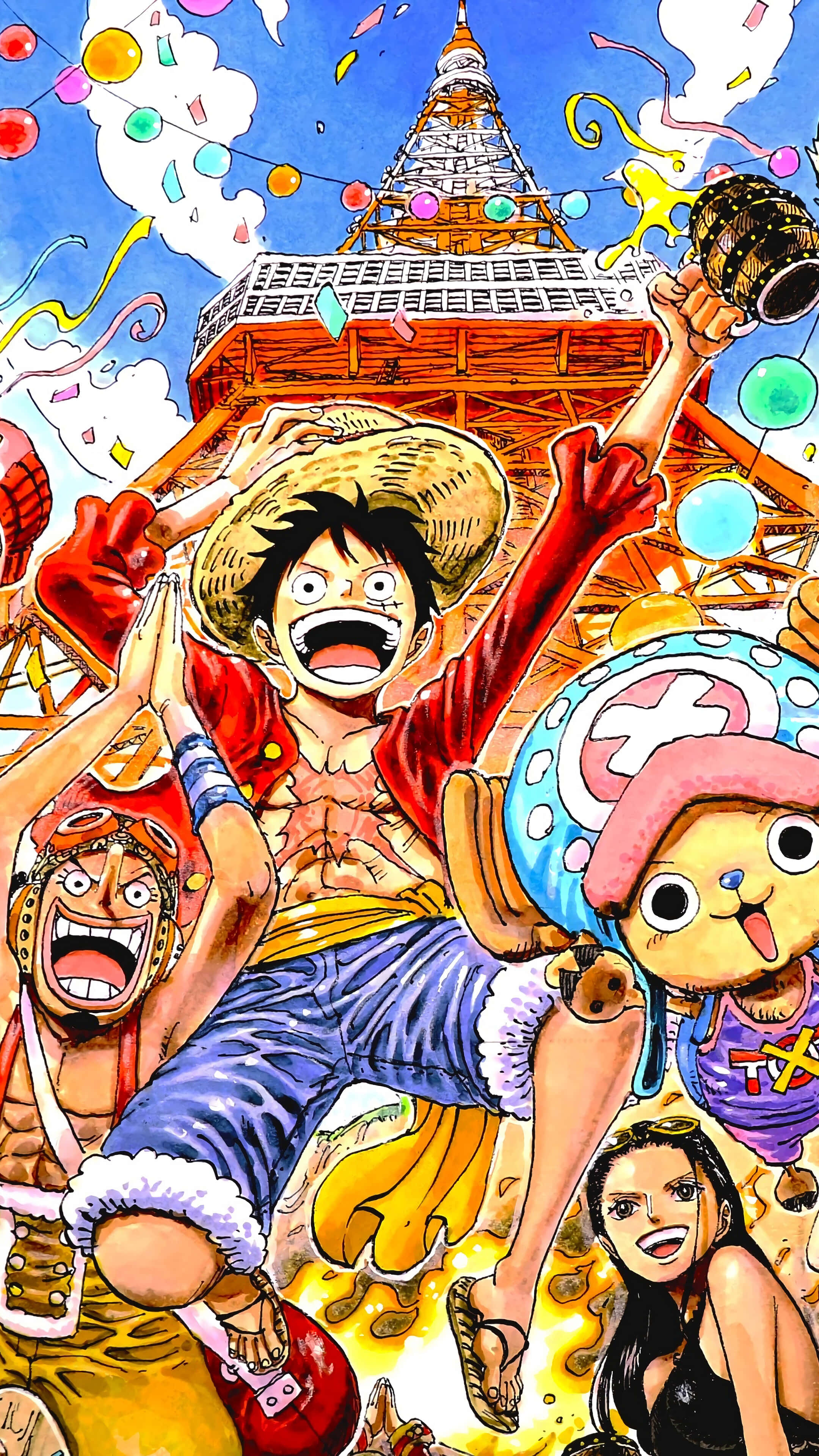 Straw Hat Pirates Celebrating Under A Tower -