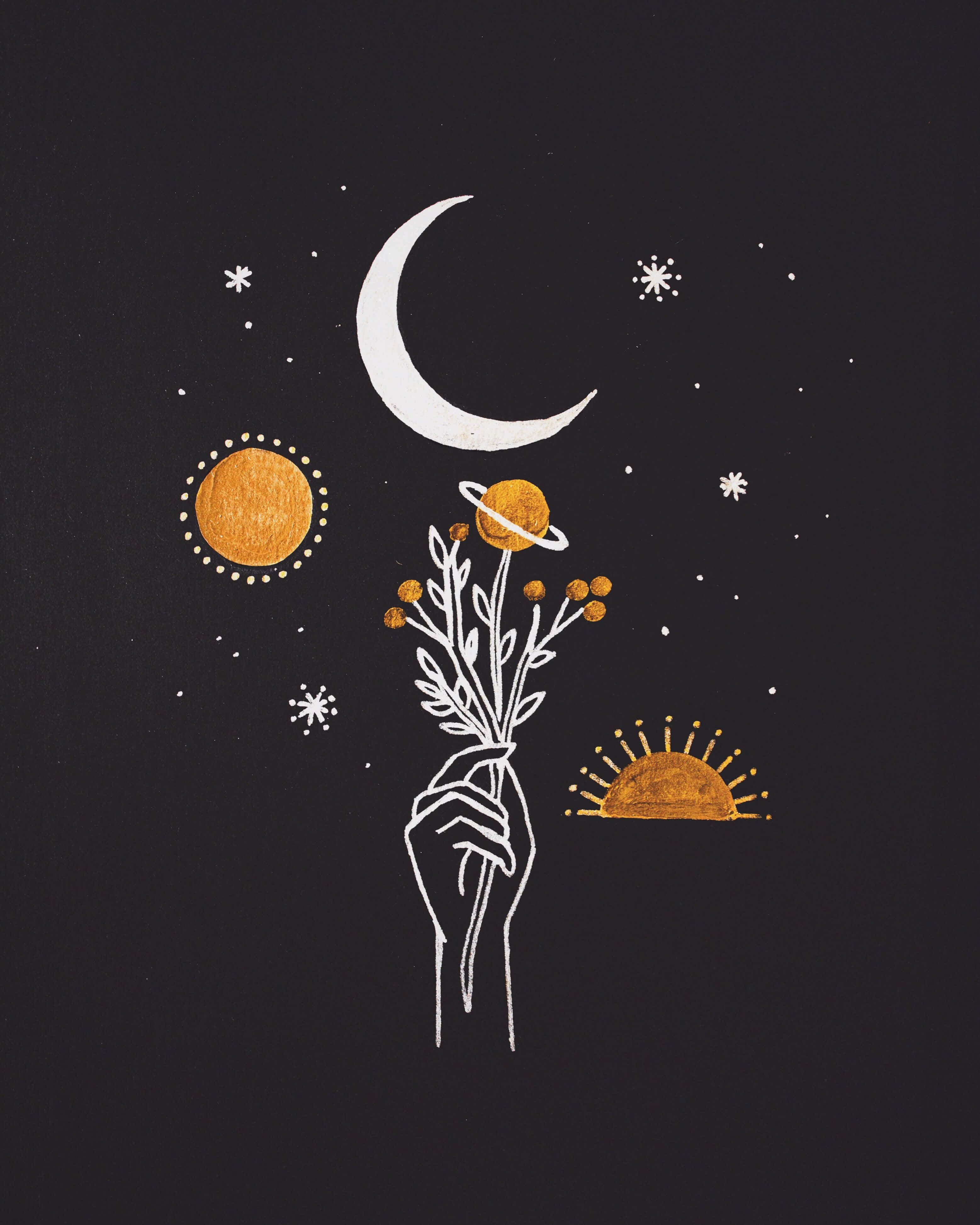 Mystical Sun And Moon Aesthetic Wallpaper -