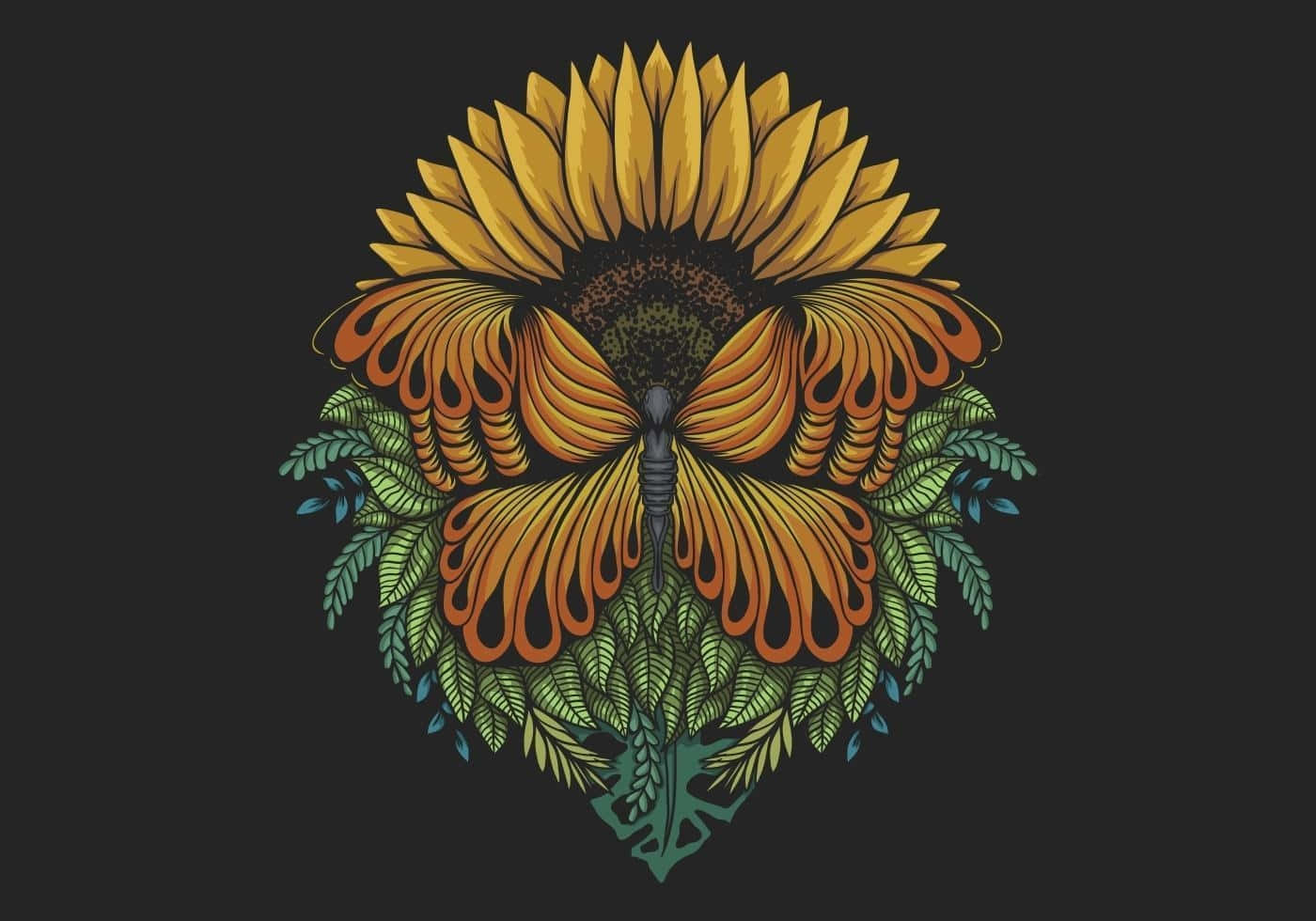 Sunflower Butterfly Pinecone Artwork Wallpaper -