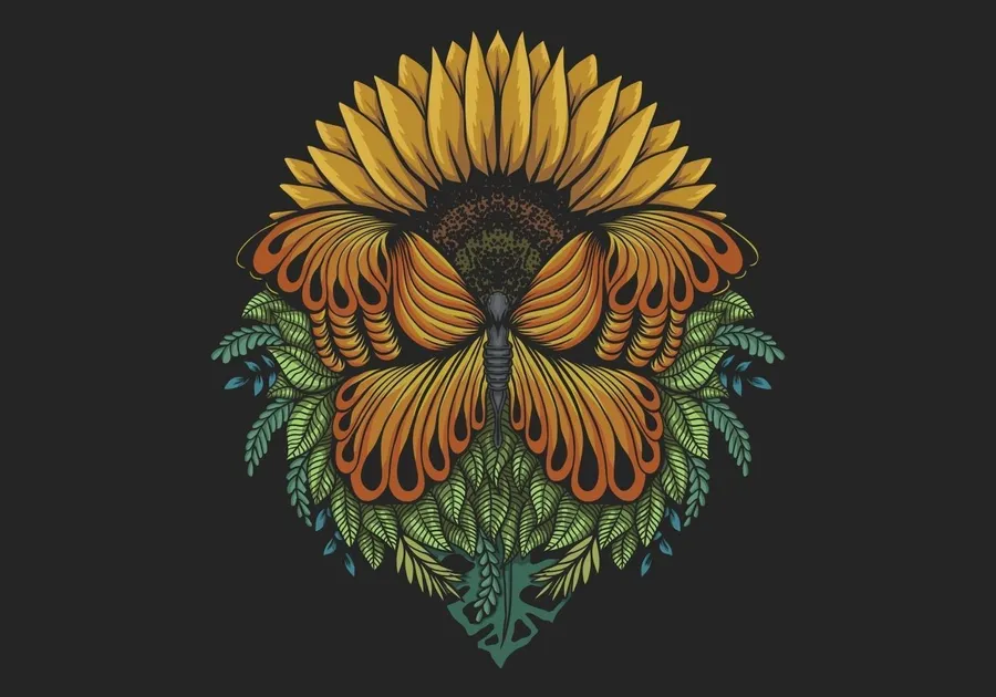 Sunflower_ Butterfly_ Artwork Wallpaper -
