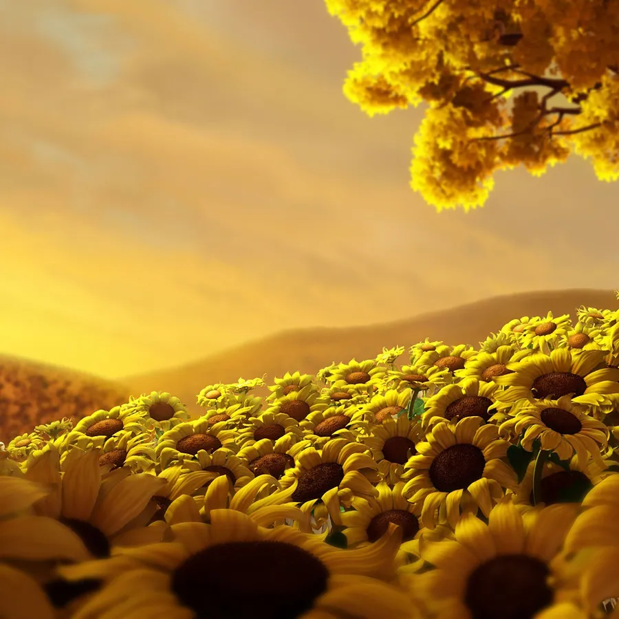 A Field Of Yellow Flowers In The Sun Wallpaper -