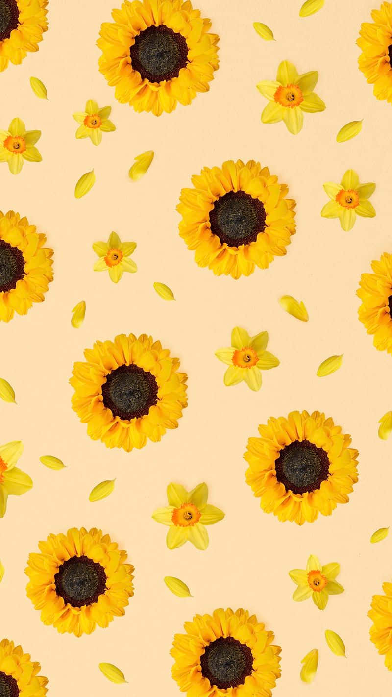Sunflowers On A Beige Background Wallpaper