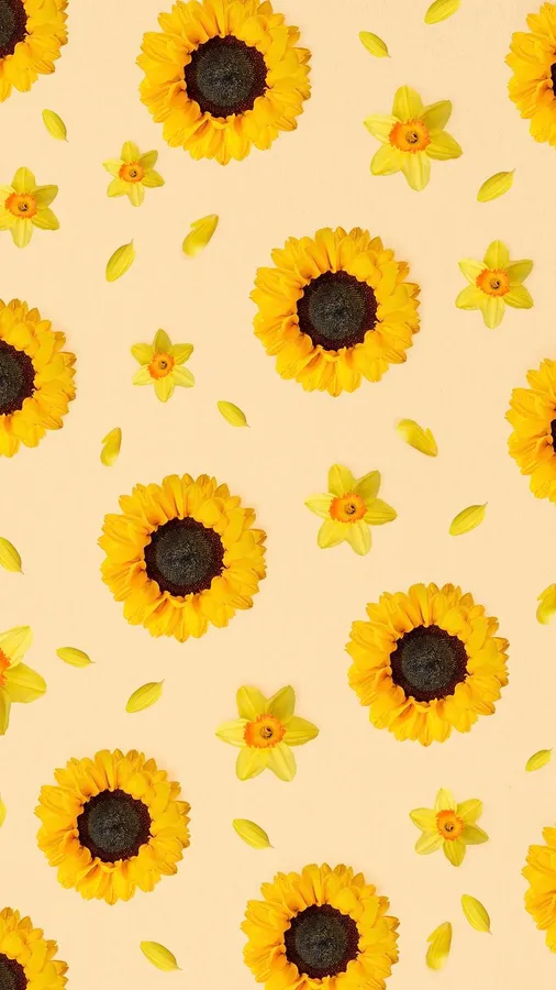 Related Sunflowers On A Beige Background Wallpaper