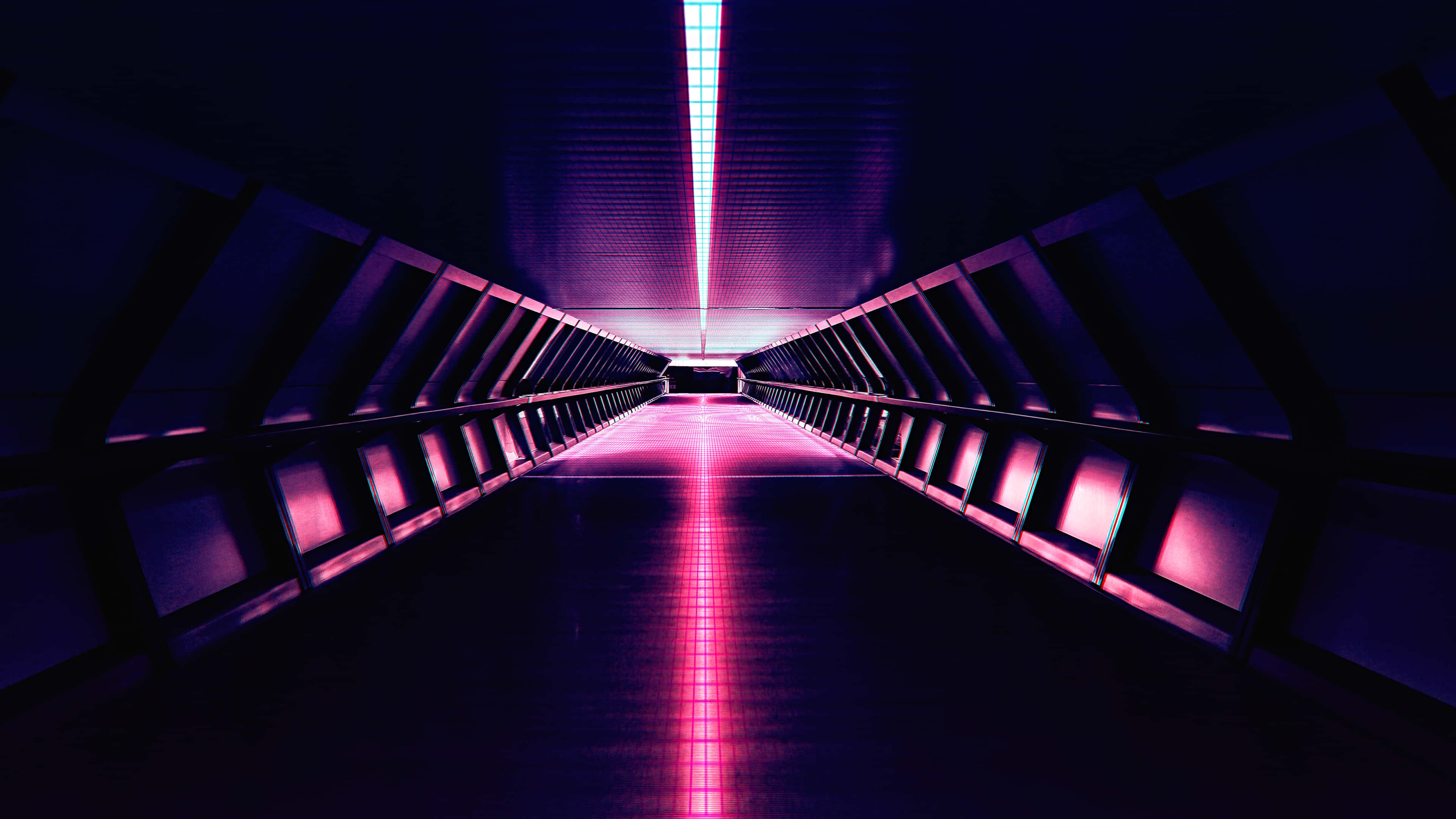 A Desktop Setup In Bright Cool Blue And Purple Hues Wallpaper -