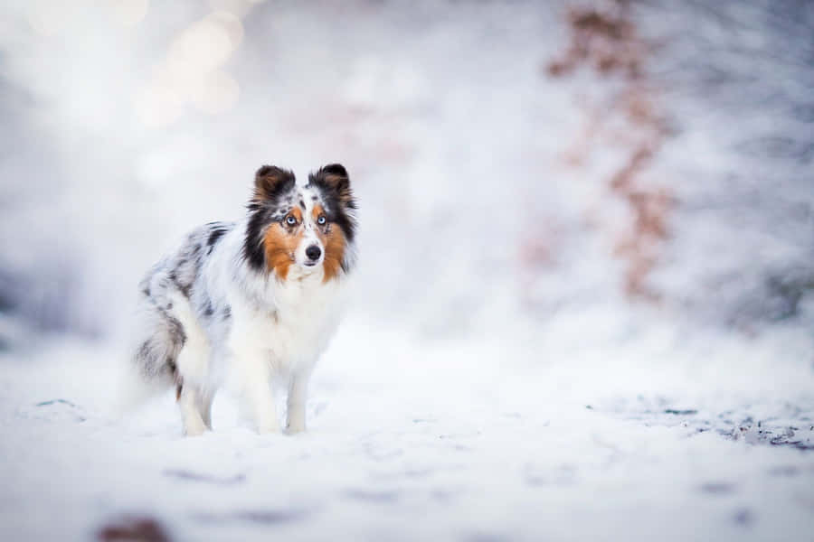 A Pup Embracing The Cold Of Winter. Wallpaper -