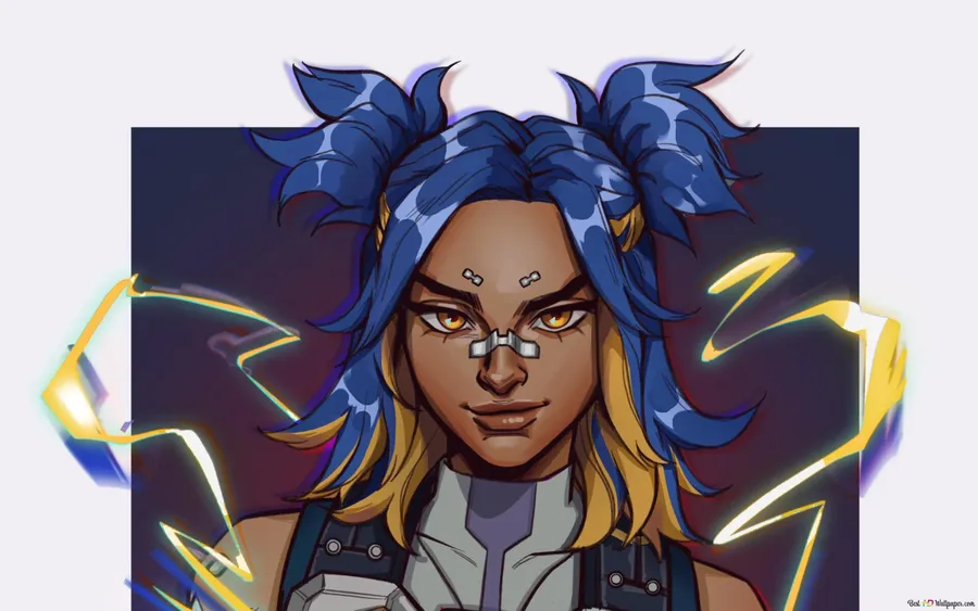 A Female Character With Blue Hair And Lightning Wallpaper -