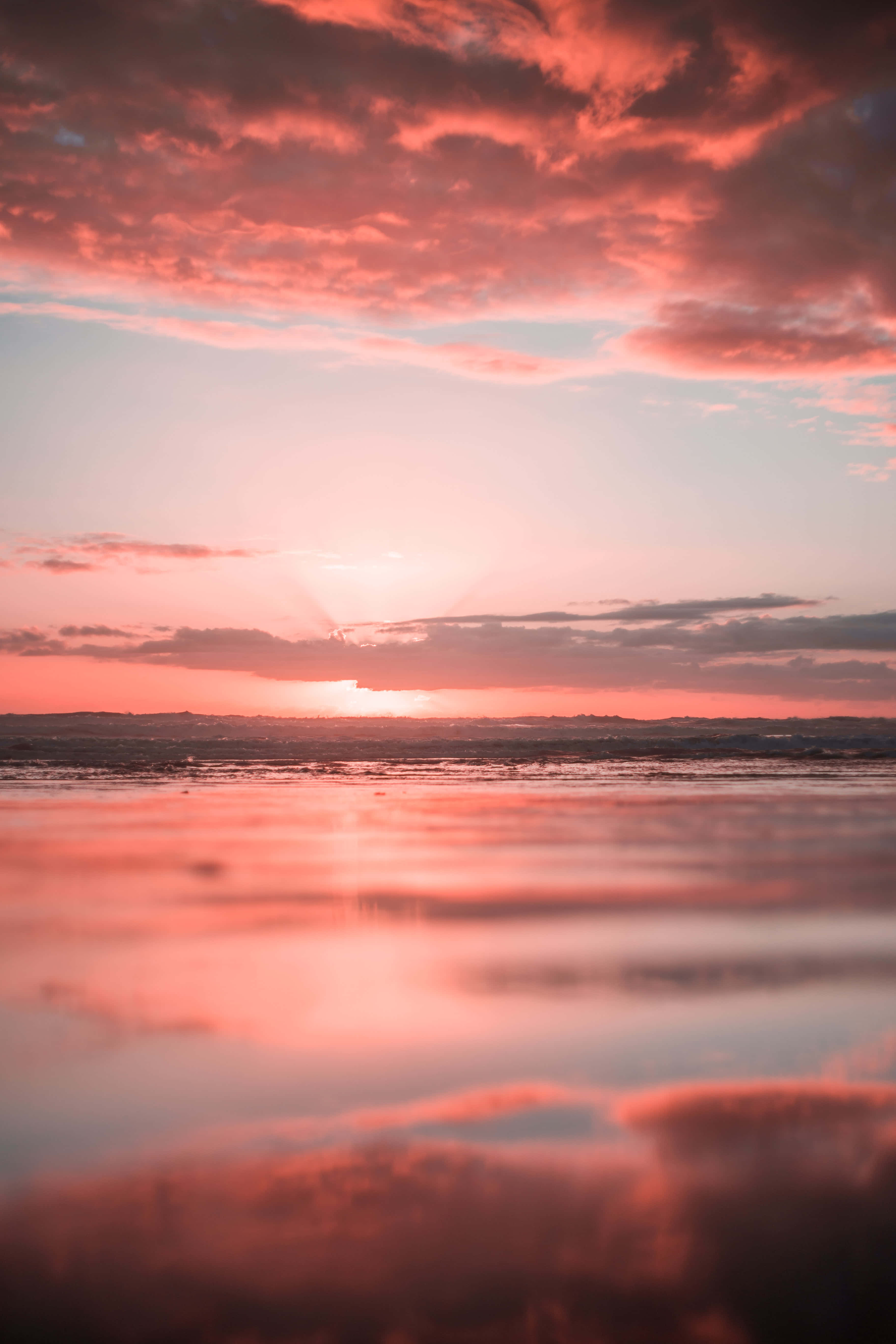 Pink Beach Sunset With The Sun's Reflection Wallpaper -