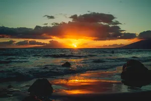 Enjoy An Ocean Sunset From The Beauty Of The Beach. Wallpaper -