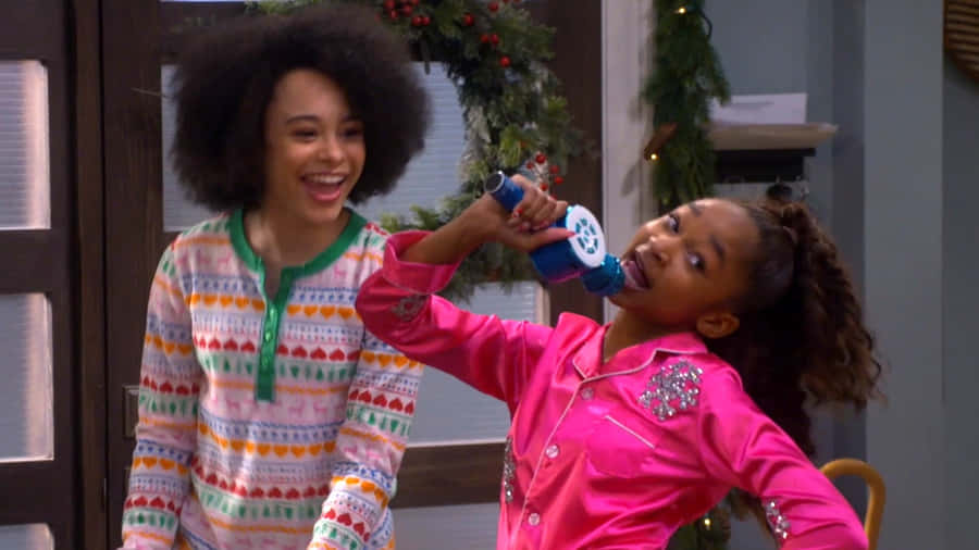 Two Girls With Afros Standing Next To Each Other Wallpaper -