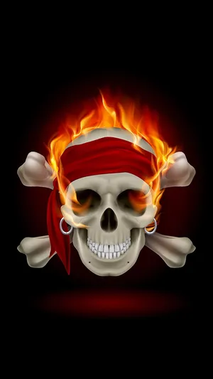 A Skull With Flames And Swirls On A Black Background Wallpaper -