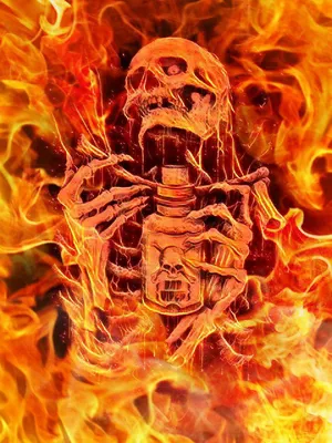 A Painting Of A Skull In Front Of A Fire Wallpaper -