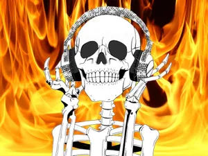 A Skeleton Playing An Electric Guitar In A Fire Wallpaper -