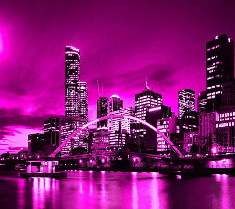 A City Skyline Lit Up In Pink Wallpaper -