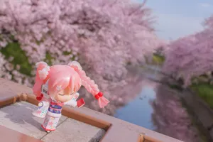 Sakura Miku Toy Beside Flowers Wallpaper -