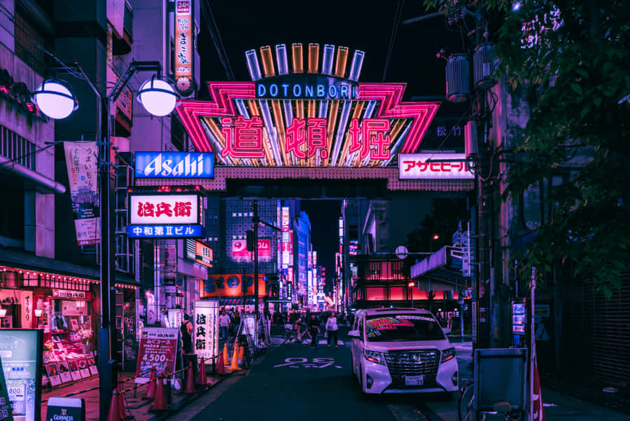 Bright Neon Lights Illuminating The Streets Of Japan Wallpaper -