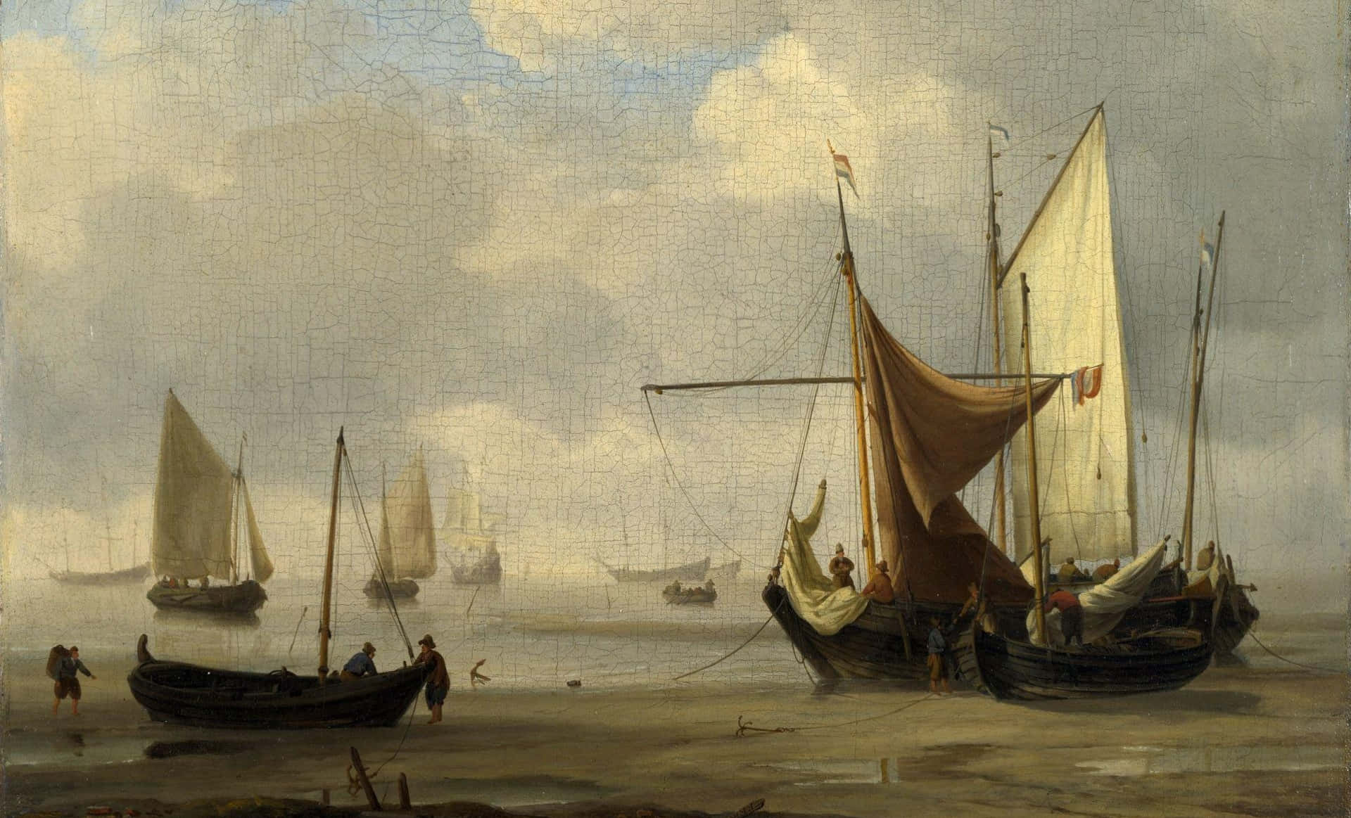 Classic Art A Dutch Vessel In A Strong Breeze Wallpaper -