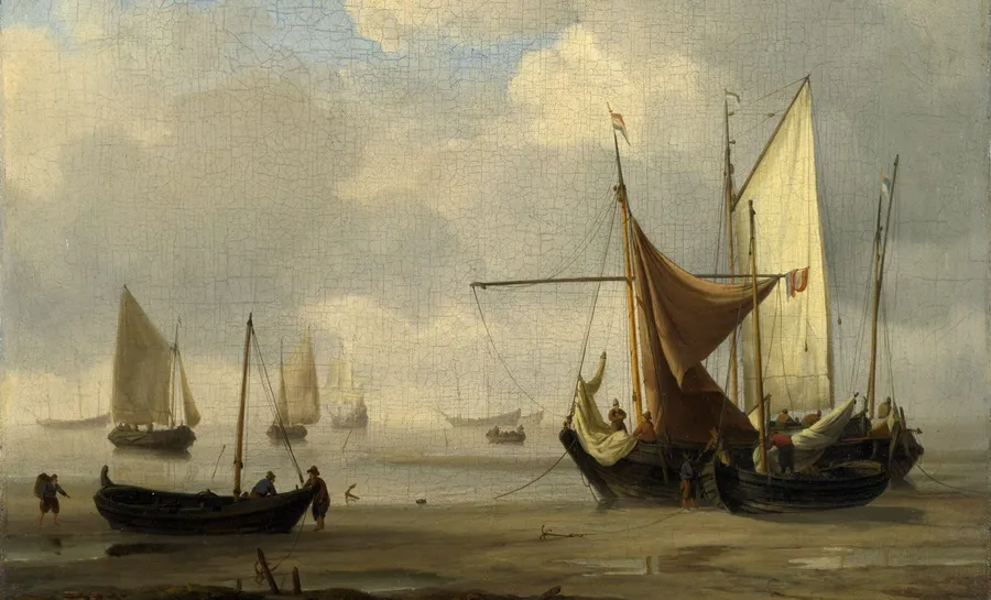 A Painting Of Ships In The Ocean Wallpaper -