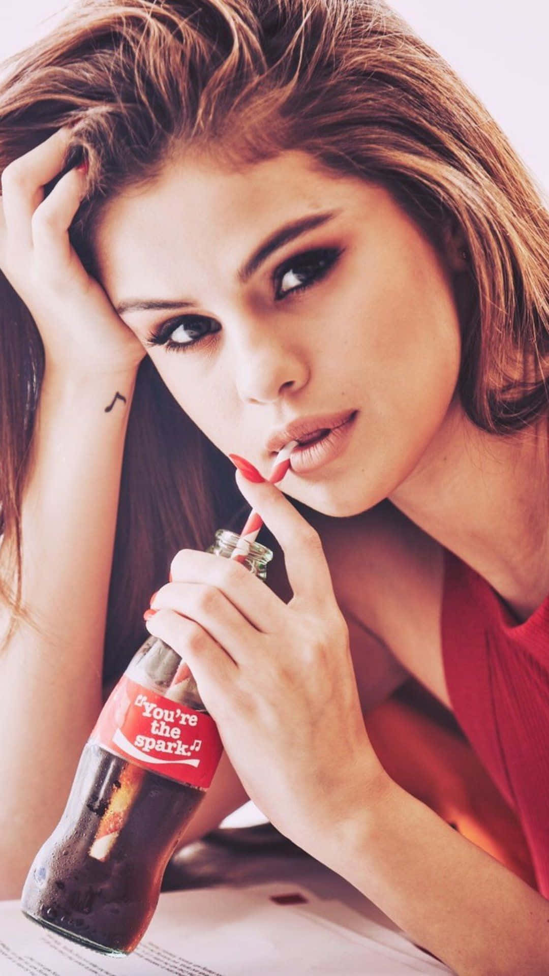 Start Your Day With Stylish Vibes With The Limited Edition Selena Gomez Iphone. Wallpaper -