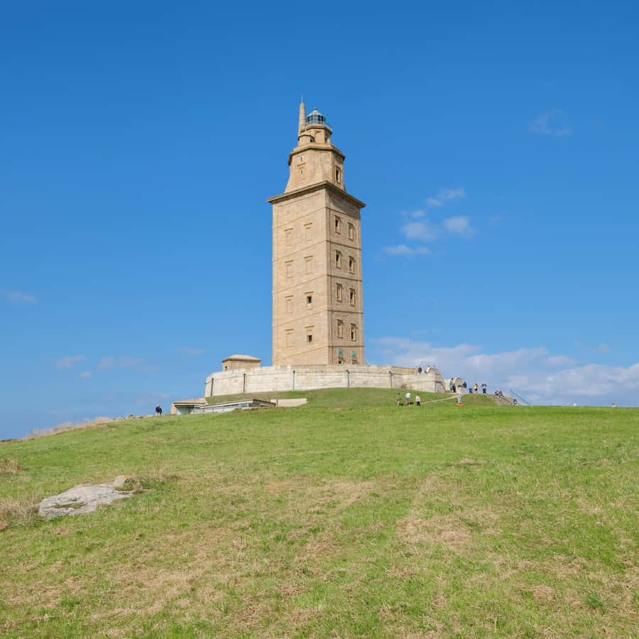 Tower Of Hercules Standing Tall Beneath Blue Sky Wallpaper -