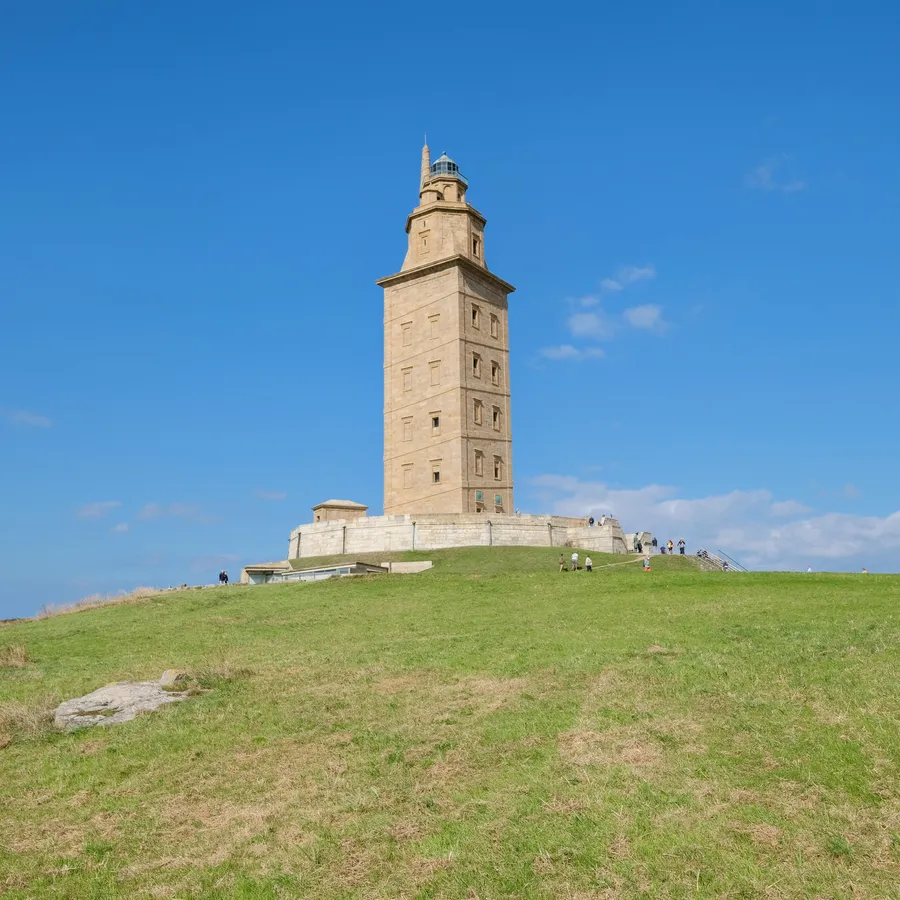 "the Majestic Tower Of Hercules Rising Above Verdant Meadows" -