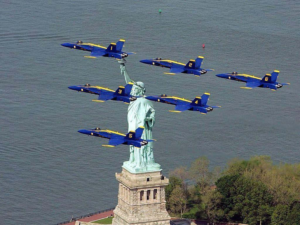 Take Flight With The Famous Blue Angels Wallpaper -