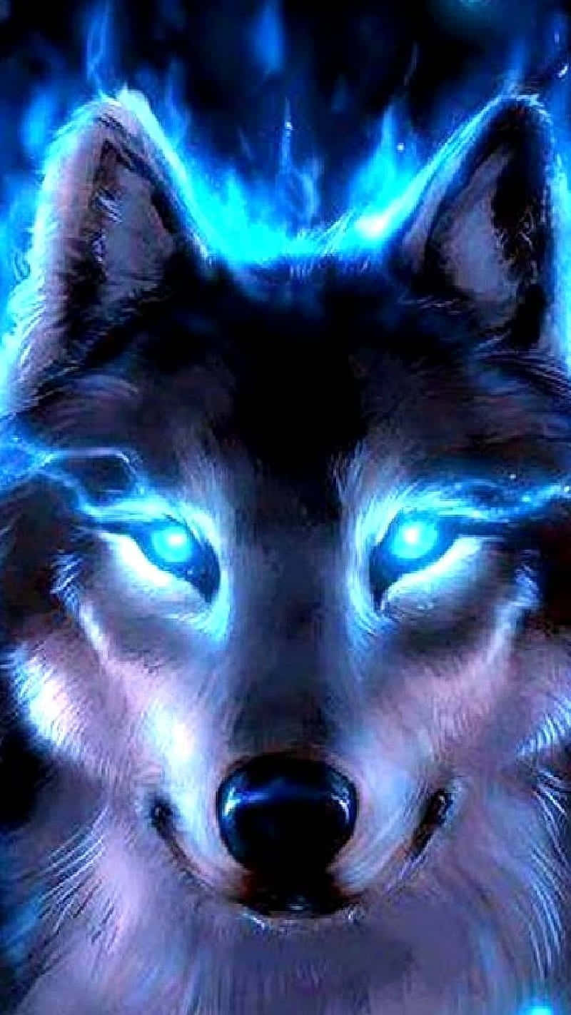 A Blue Wolf With A Flame In The Background Wallpaper -