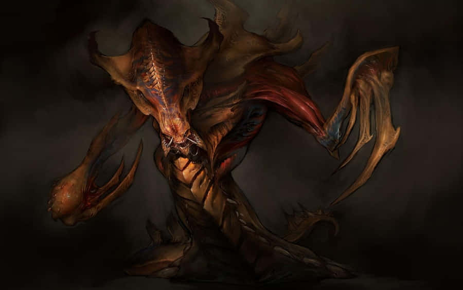 A Lizard-like Creature From The Zerg Race In The Online Strategy Game Starcraft. Wallpaper -
