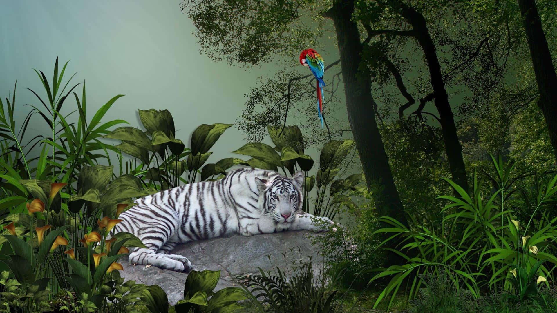 Tiger And Parrot In Jungle Desktop Wallpaper -