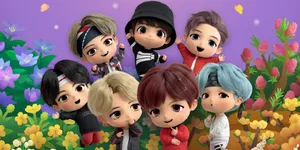 Tiny Tan Bts Doll Set In Blue Wallpaper