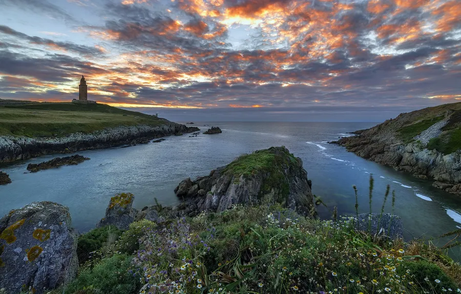 Gorgeous Sunset Landscape Around The Tower Of Hercules Wallpaper -