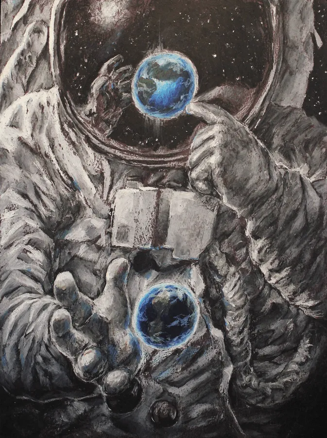 Trippy Astronaut In Space Earth Art Wallpaper -