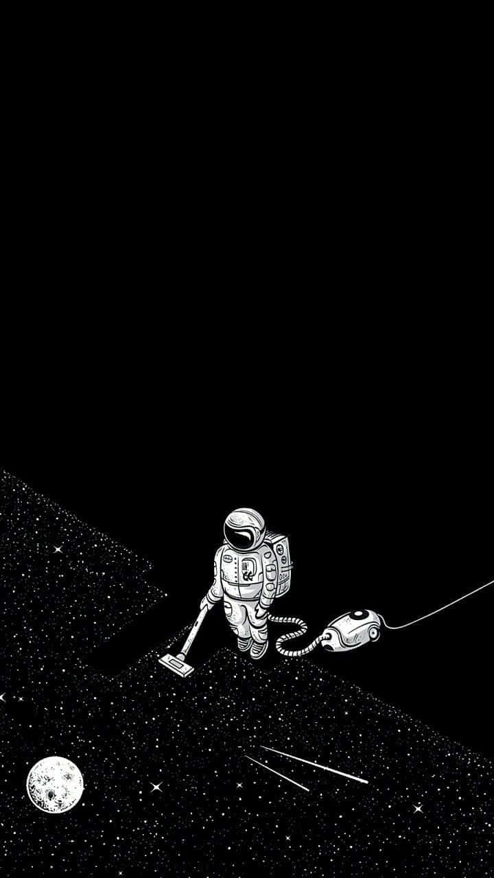 Trippy Astronaut In Space Vacuuming Wallpaper -