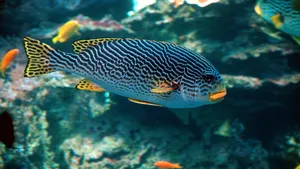 "gorgeous Yellow-banded Sweetlips Tropical Fish Gliding Through Vibrant Underwater Realm" Wallpaper -