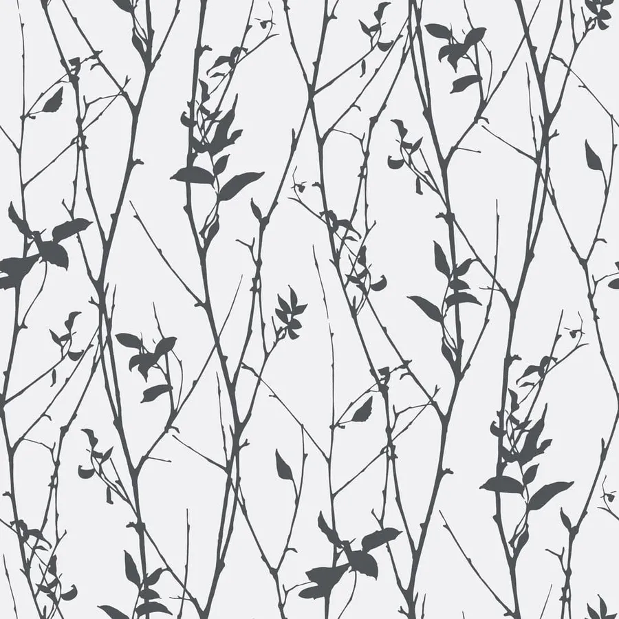 Twigs And Leaves Black And White Pattern Wallpaper -