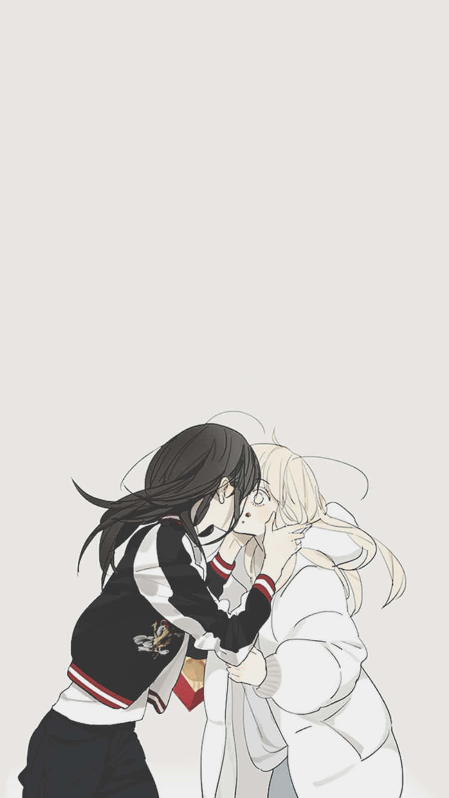 Cute Lesbian Anime Couple Enjoying A Sweet Moment Wallpaper -