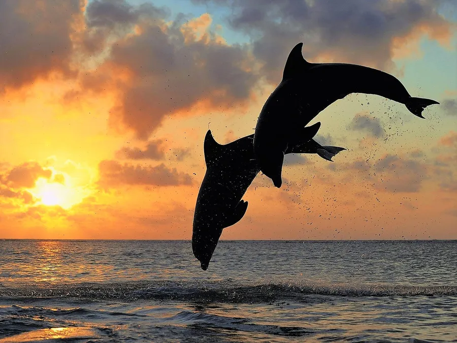 Related Two Dolphins Jumping Out Of The Water At Sunset Wallpaper