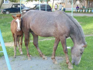 "cute Criollo Foal Playfully Accompanies Its Mother In A Tranquil Park" Wallpaper -