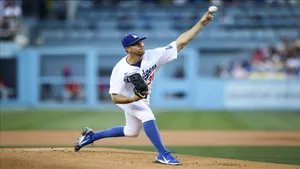 Tyler Anderson In La Dodgers Jersey Wallpaper -
