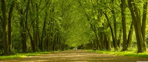 A Brilliant Blue Sky Provides A Breathtaking Backdrop For Lush Green Trees In An Ultra-wide Nature Landscape. Wallpaper -