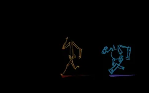 Orange Stick Figure Portal 2 Dual Screen Wallpaper -